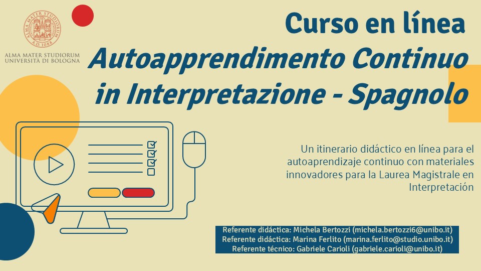 Questa è la versione Beta del corso online di Autoapprendimento Continuo in Interpretazione 3 CFU) per il CdL Interpretazione.